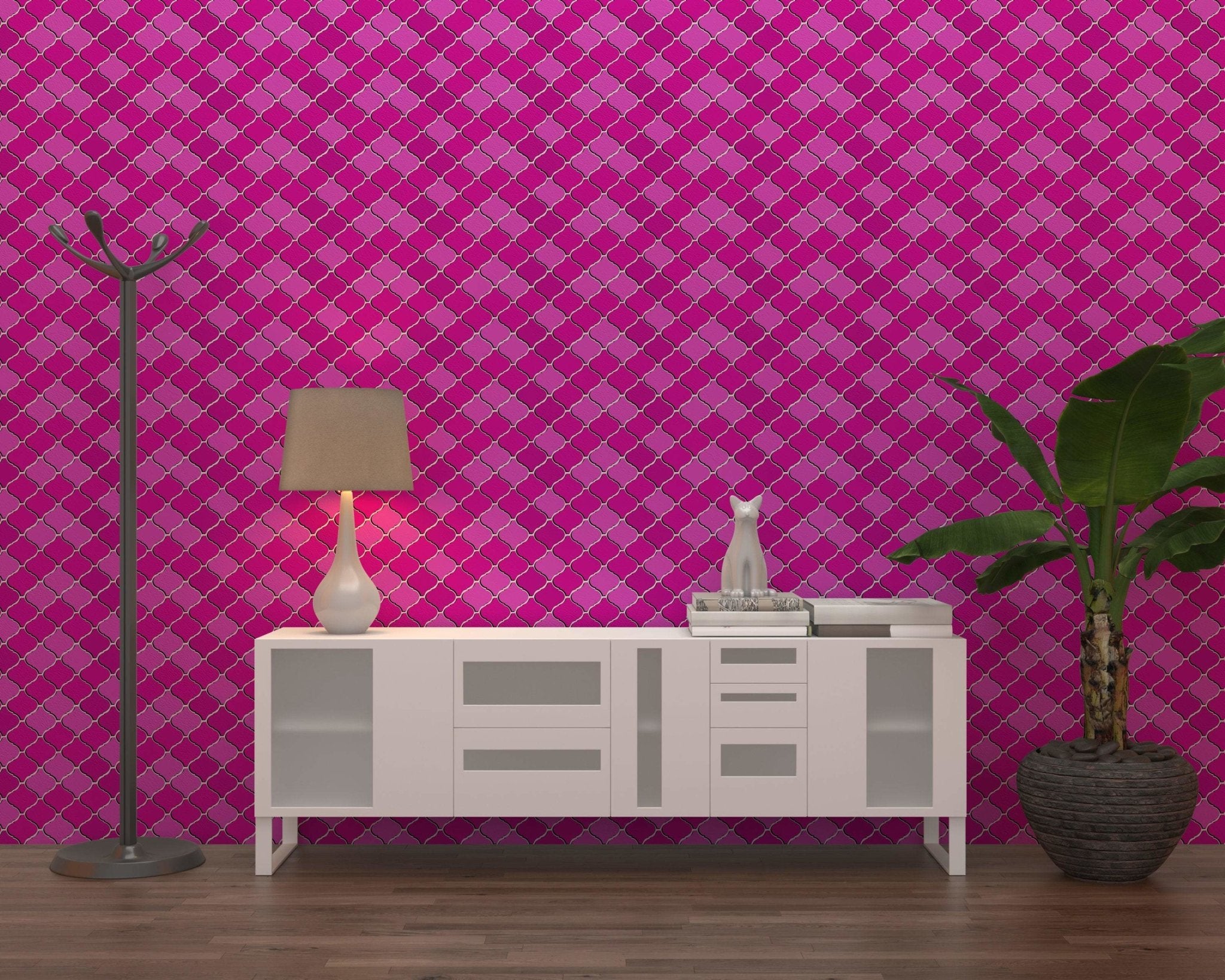 This printable paper glass tile wallpaper is part of our newest line of dollhouse decor. This pink moroccan design will bring a whimsical style to your miniature model.