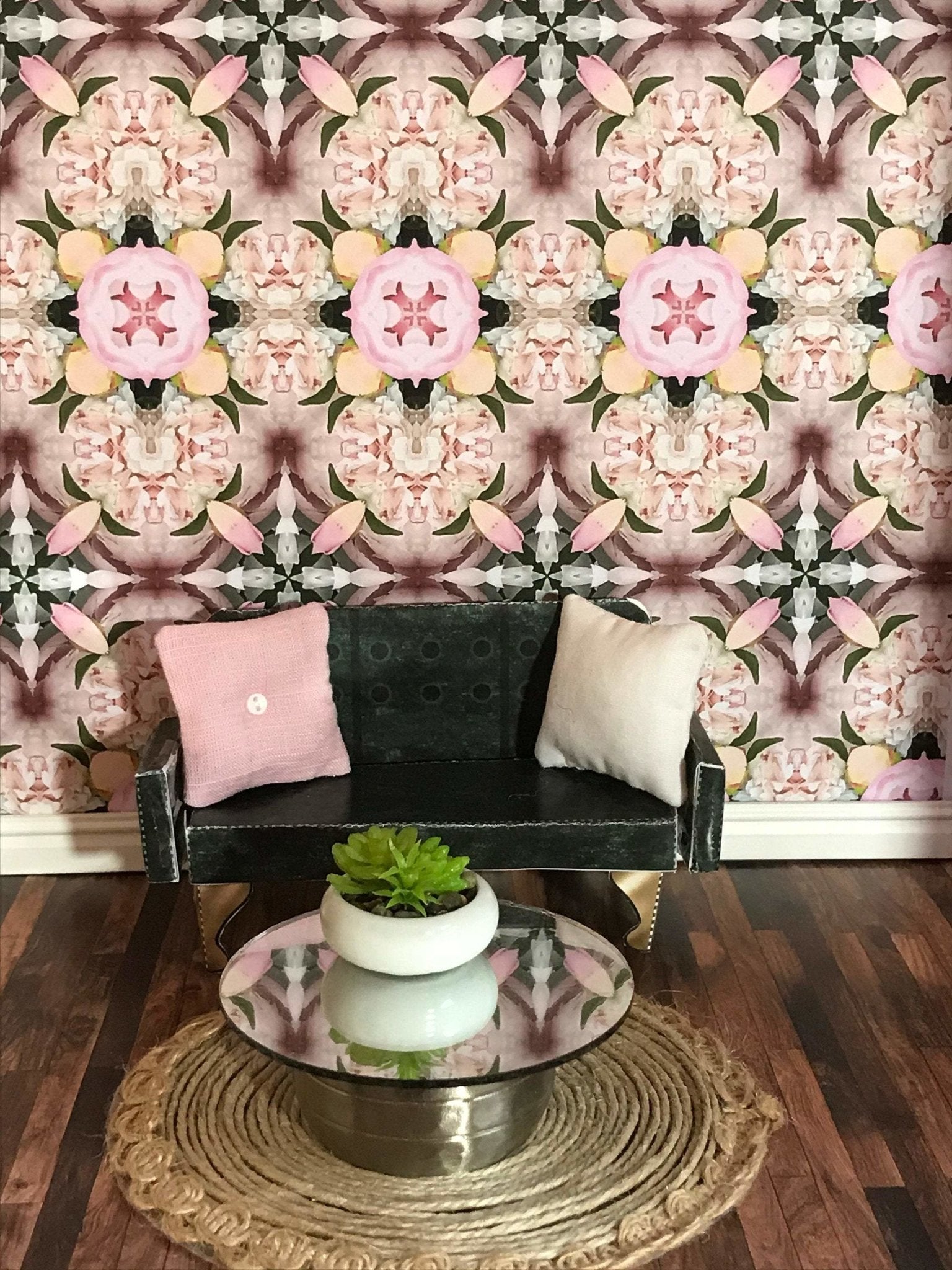This dollhouse wallpaper is part of our newest line of printable decor. This lush pink blossoms design will bring a whimsical & romantic style to your miniature model or diy book covers.