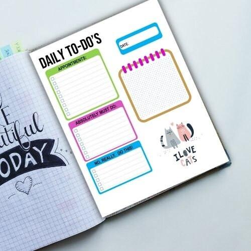 This ADORABLE I Love Cats To Do List Daily Planner Note Page will add a FUN touch to all of your journals and planner notebooks.