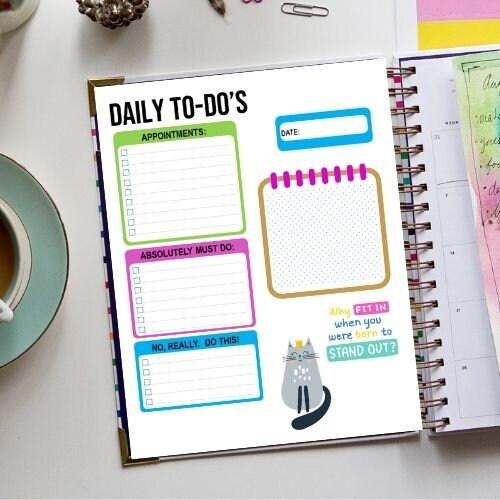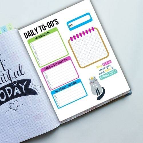 This ADORABLE Cat To Do List Daily Planner Note Page will add a FUN touch to all of your journals and planner notebooks.