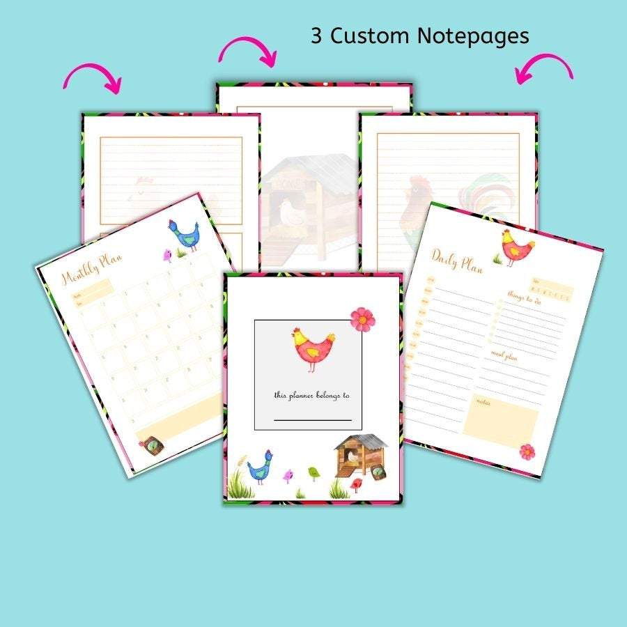 Keep Track of your Schedule with this ADORABLE Chicken Planner! These pages are designed with Rich & Saturated Colors that are still EASY on your printer ink! This COMPLETE 13 page set is not only BEAUTIFUL, but Super Helpful.