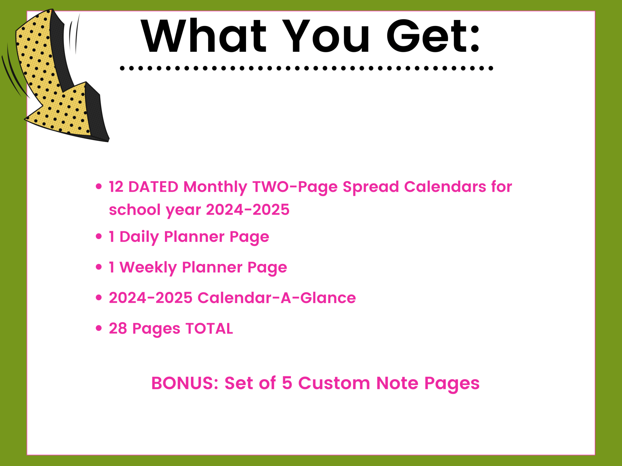 Stay organized with this super convenient DATED monthly calendar set for the 2024-2025 School Year.