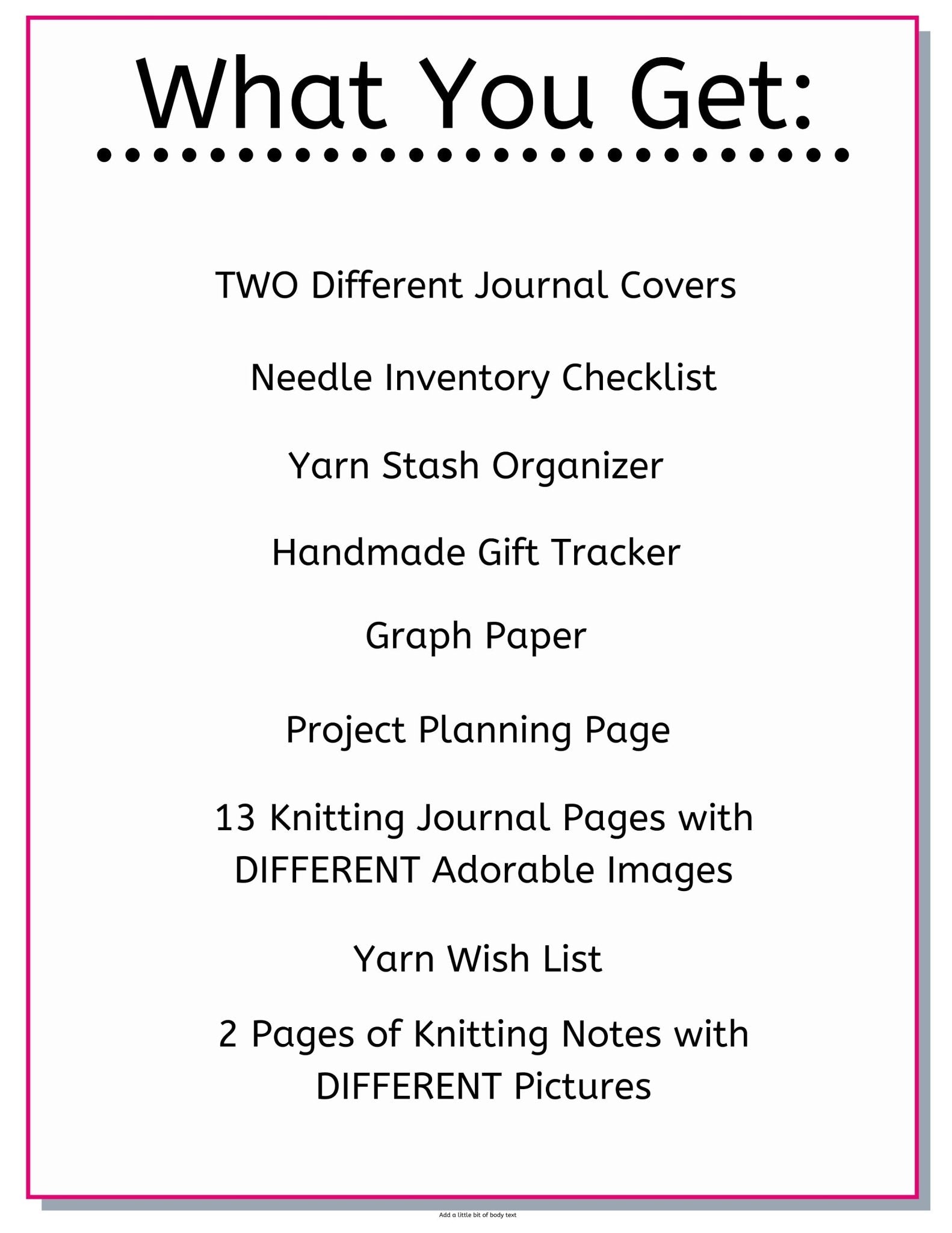 6. 13 Knitting Journal Pages with Different Adorable Images