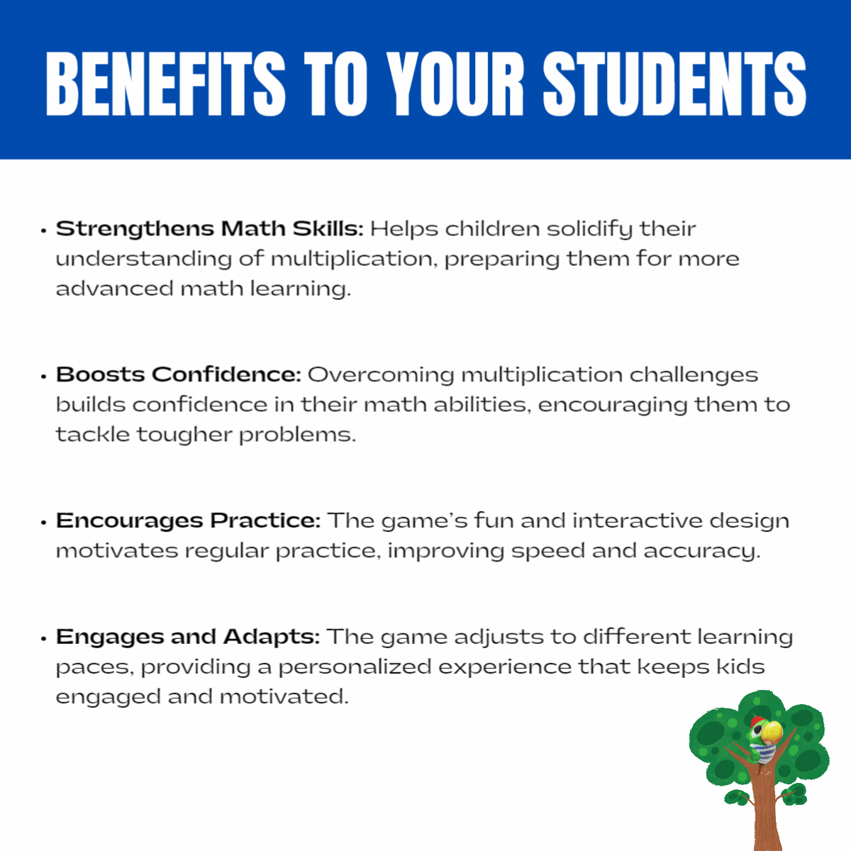 Support Every Learning Style: Whether you’re in the classroom or homeschooling, this game adapts to your child’s pace, making it a versatile tool for reinforcing multiplication concepts.