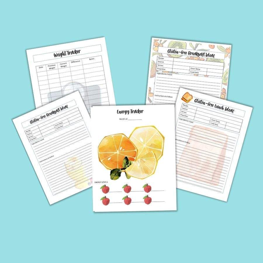 Keep track of and get the MOST from your Gluten Free Diet with this GORGEOUS 8.5x11 Gluten Free Journal & Planner Set.