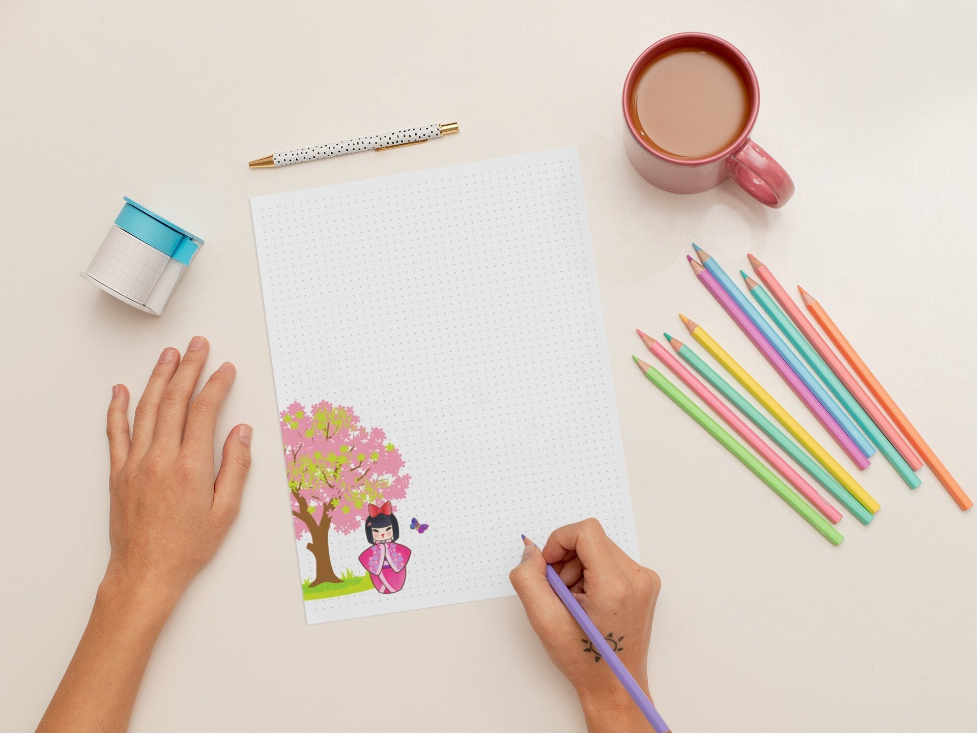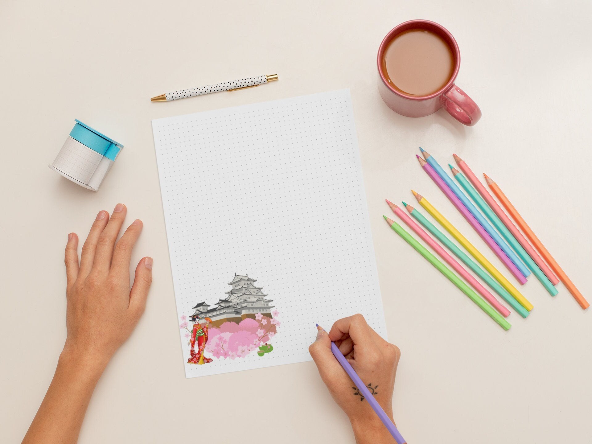 This GORGEOUS Japanese inspired Dot Grid pages will add an exotic touch to all of your bullet journals and planner notebooks.