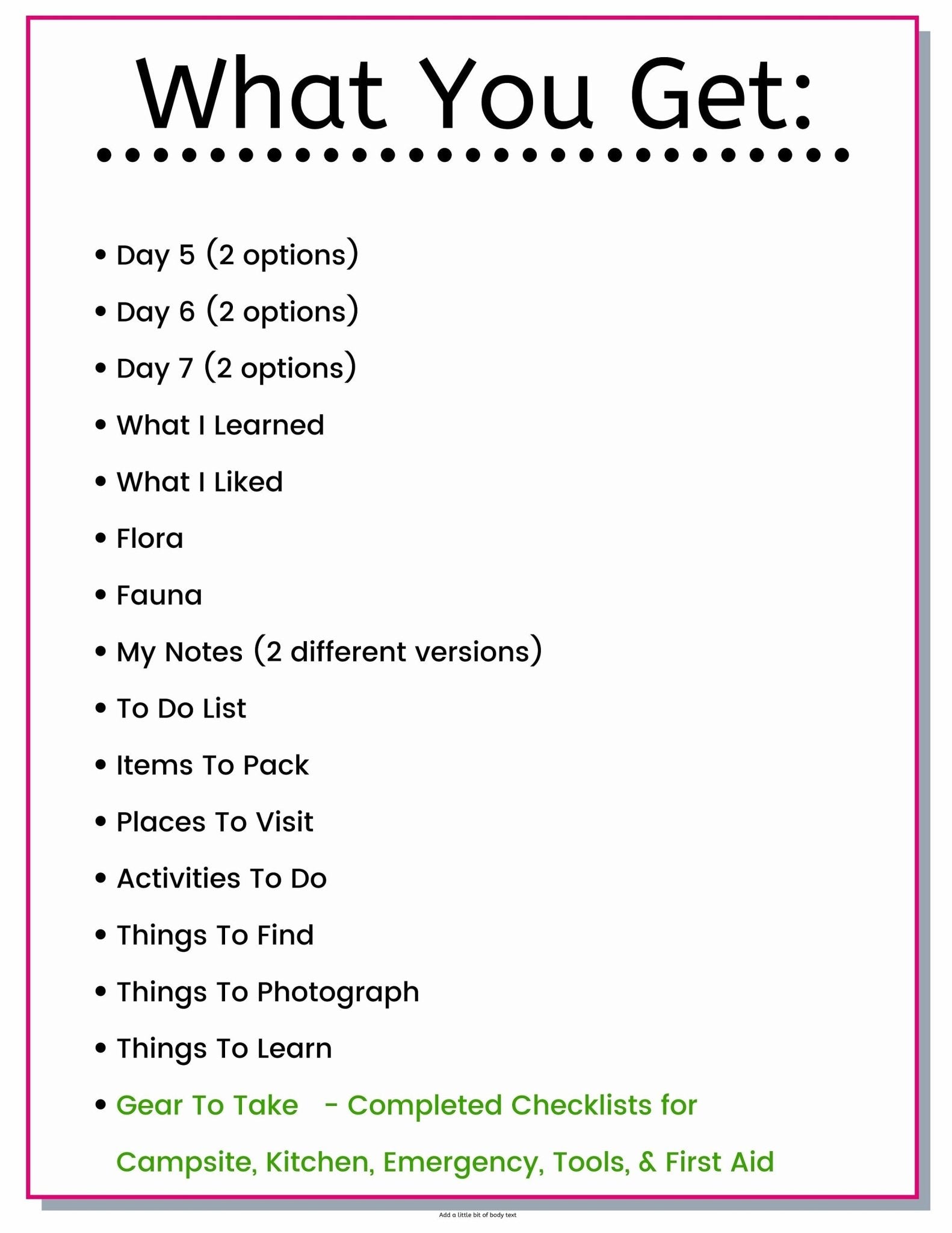 Keep Track of your next Family Camping Trip with this adorable 8.5 x 11 Camping and hiking Trip Travel planner and journal set. This complete 69-page set is not only beautiful but Super Helpful.