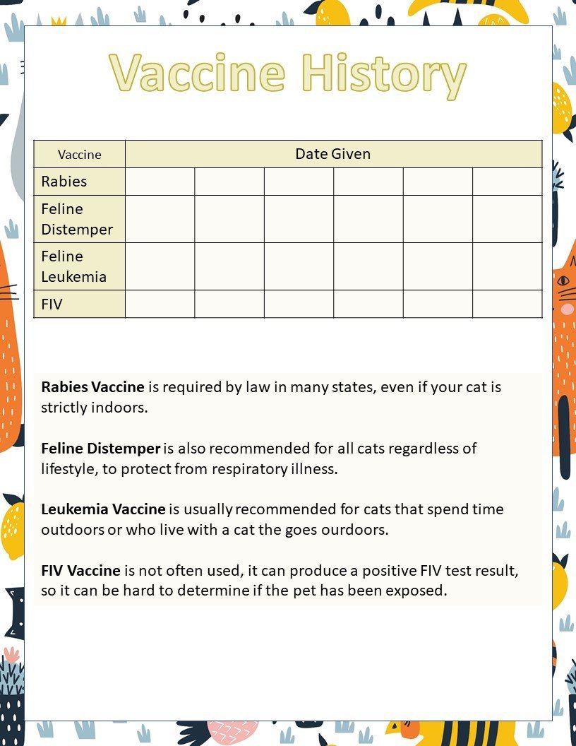 1. It will help your keep your kitty's VACCINATIONS and HEALTH HISTORY in one place.