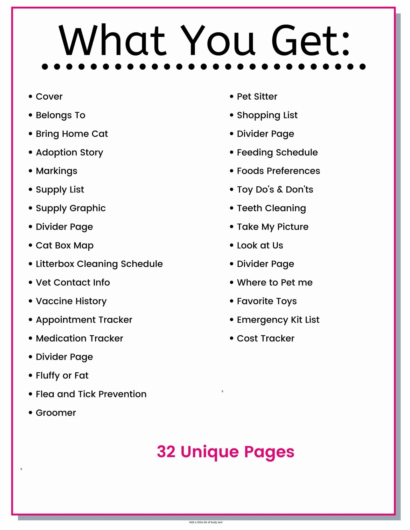 Make multiple prints to use each week. Insert pages into a cute binder to make a USEFUL & VERY AFFORDABLE gift to the cat owners in your life!