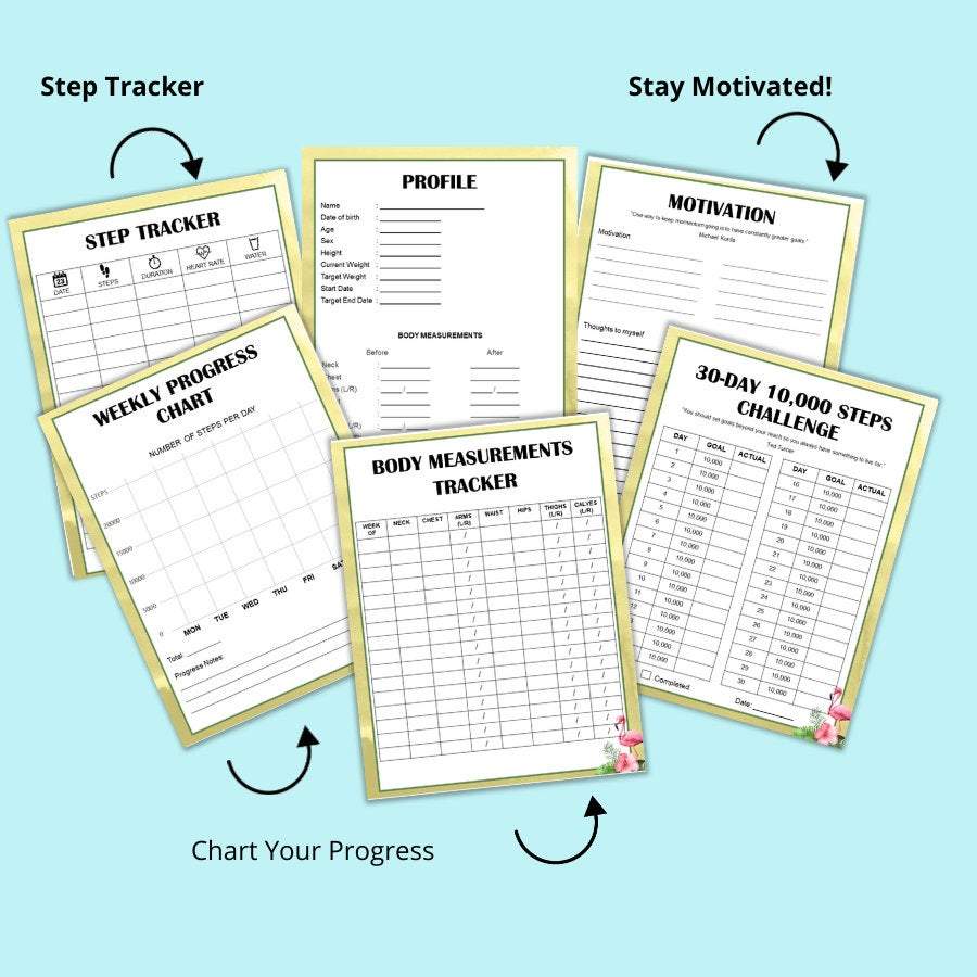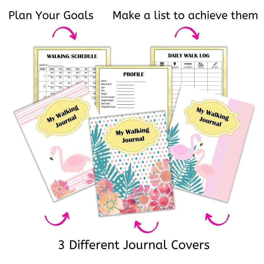 This ADORABLE & Super Helpful US Letter Size 8.5x11 Complete Walking Journal and Log set is the PERFECT tool to help you plan and chart your weight loss and fitness goals and progress.